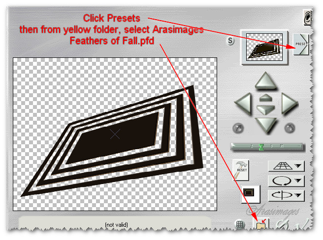 12. Effects/Andromeda/Perspective. Select from the Presets/ArasimagesFeathers Of Fall/( Full Canvas/Freeform/ff 02 Chair).
