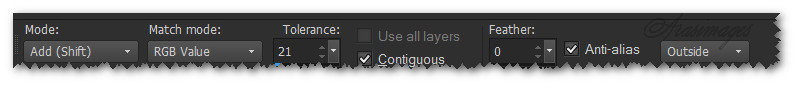 36. Using Magic Wand, Tolerance and Feather set to 0, select the 5px border. Flood fill 5px border with goldbeads/Angle 0/Scale 148.