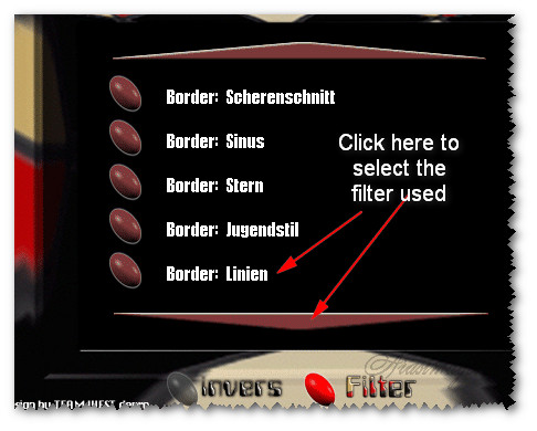 48. Effects/Filter Attacks/Border: Linien. Click Filter button then on down arrow to find Border: Linien. See settings below.