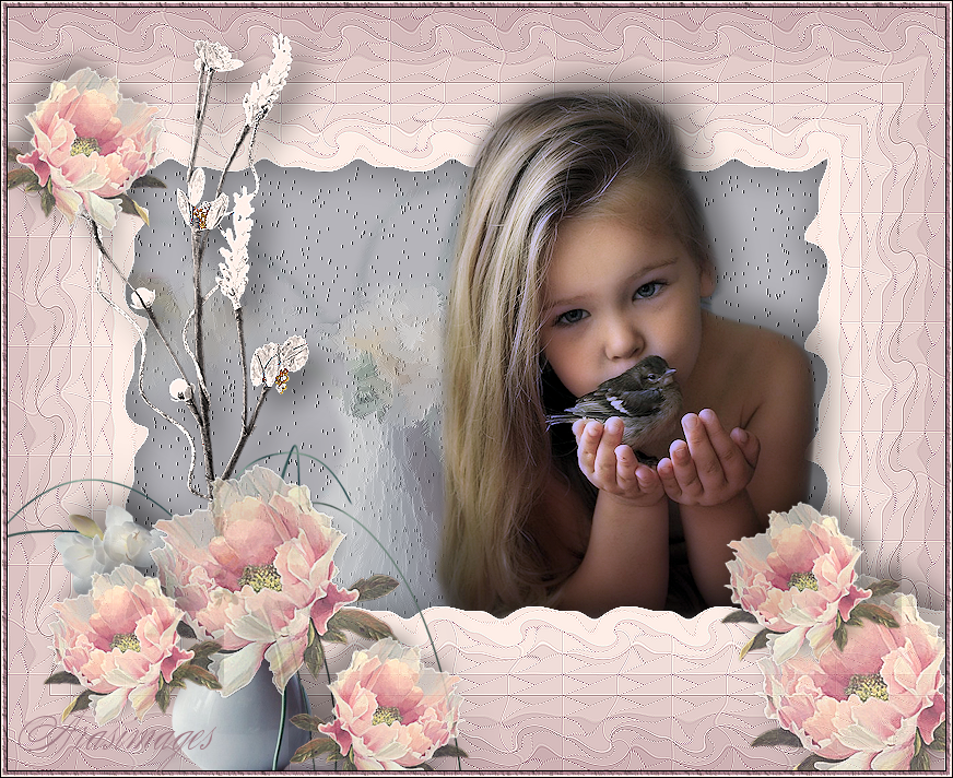 20. Image/Mirror. Pull little girl layer down between Raster 3 and Copy of Raster 3 ruffled borders. Place her on right side by border.