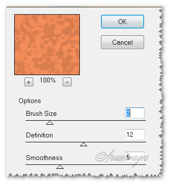 21. Selections/Invert. Drop down to first layer. Apply Effects/Artistic/Sponge.
