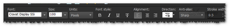 43. From Text tool, select Font Cravat Display SSi, Size 100, Stroke 0.5. Type "Fish out", press Enter key once, then space 4 times, then type "of Water".