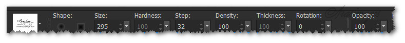 27. Find the Brush Agi_purelove from the Paint Brush tools. Use settings below, stamp in center with Foreground color #731c1a.
