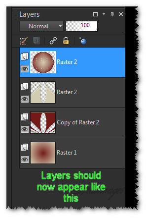 15. Reopen the bottom layer. Pull layer of Circle to the top to continue. See example of Layers below.