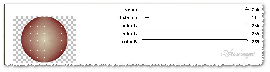 1. In Materials Palette, set Foreground to #731c1a, Background to #d5d0b3. Create Gradient using Style sunburst,Repeats 0, Angle 0, Invert unchecked, Center and Focal points both at 50 Horizontally and Vertically.