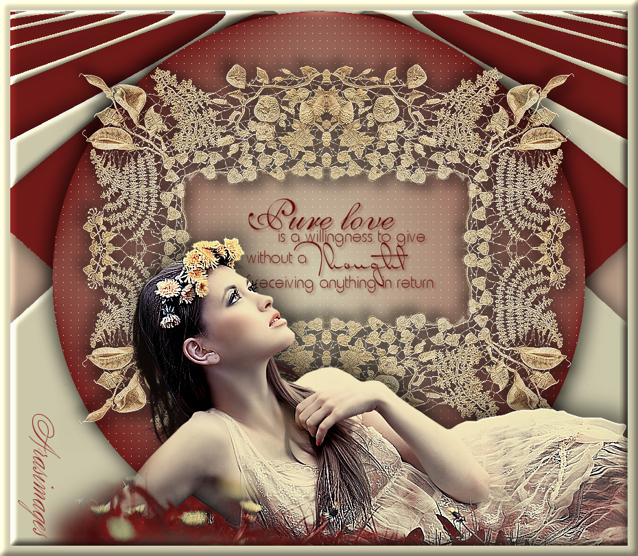 Unzip the materials into a working folder you have created on your desktop named Pure Love. Please duplicate and close original tubes. I have used the plugin Penta.com/color dot and PSP effects in this tutorial. Place the ArasimagesInnerBevel in your PSP/Presets folder. Export the agi_purelove brush in your PSP Brushes folder. It is assumed you have a working knowledge of PSP to follow these directions. I have used PSPX6 for this tutorial but other versions may be used. To work this tutorial, it is assumed you have some working knowledge of Paint Shop Pro.