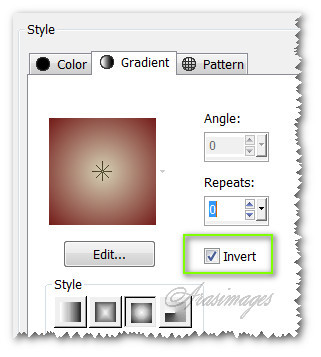 3. Layers/New Raster Layer. In Materials Palette/Gradient, check Invert. Flood fill with new Gradient.