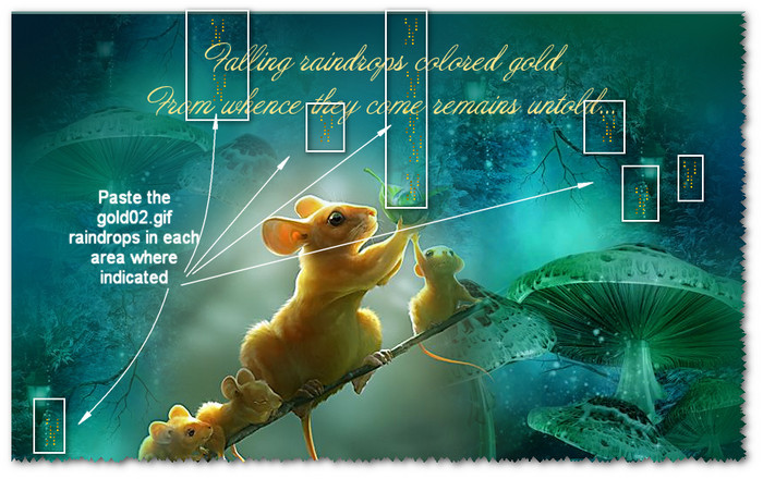 34. You will repeat the Paste/Into Selected Frame and clicking into place for each area you wish to have the falling golden rain. See my example for placement.