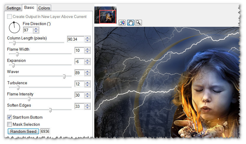 8. Apply fire once again, clicking on Random Seed. Click OK.