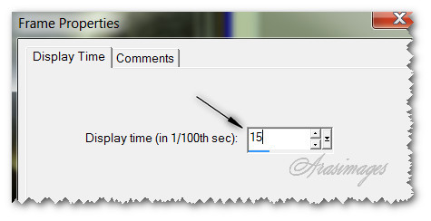 12. Edit/Select All. Click on Animation/Frame Properties. Change the display speed from 10 to 15.
