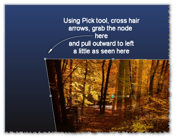 5. Using the Pick tool, Mode: Scale, hover mouse over top left node until cross hair arrows show, grab the node and pull outward as seen below.