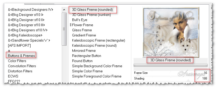 63. Effects/Filters Unlimited/Buttons&Frames, frame size 16, Shading 188.