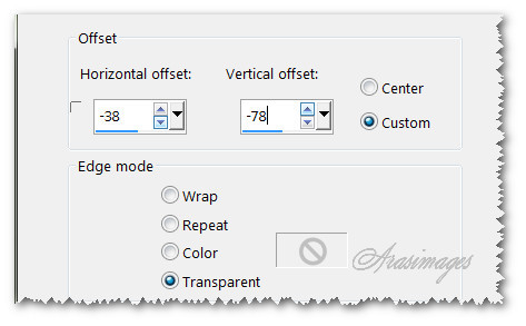 21. Effects/Image Effects/Offset. Horizontal offset: -38, Vertical offset: -78, Custom/Transparent.