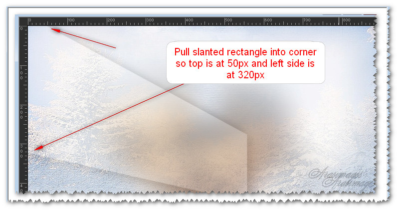 14. Pull angled rectangle into left corner so top is at 50px, left side is at 320px as seen in example below.