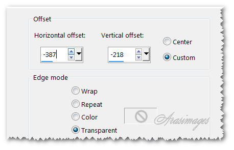 25. Effects/Image Effects/Offset. Horizontal offset: -387, Vertical offset: -218, Custom/Transparent.