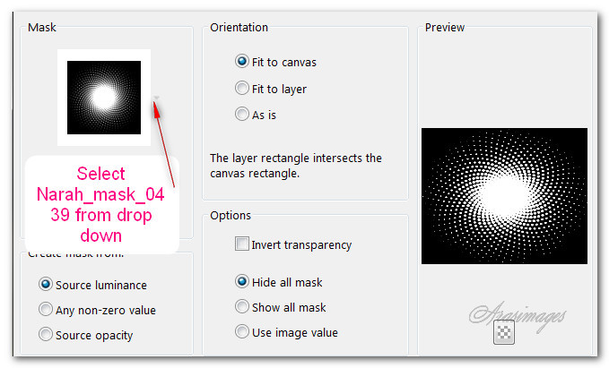 14. Layers/Load/Save Mask. Load Mask from Disk. Select the Narah-mask_0439. Load.