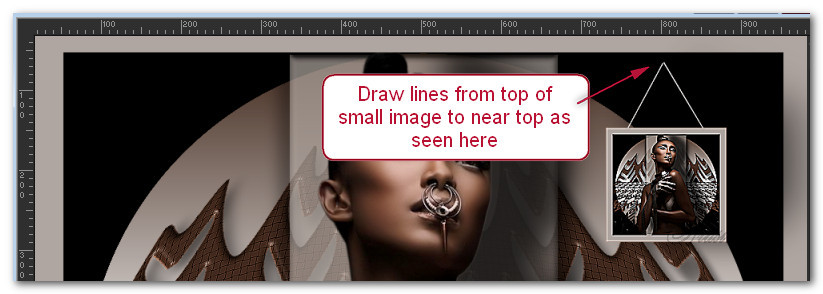 34. Using the Pen tool, Line Style set to solid, Width 2.00, Anti-alias checked and other settings as seen below, draw lines from near the top border down to the border of the small square.