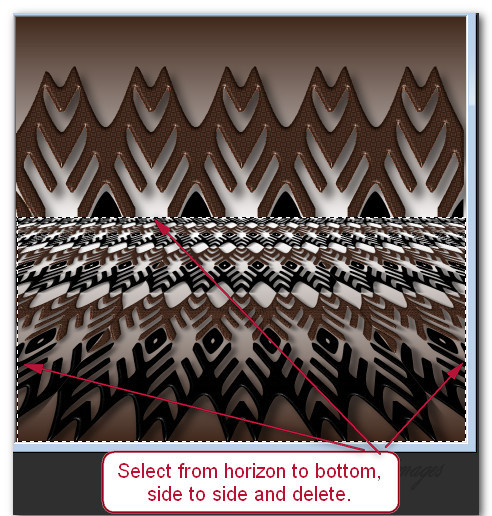 12. Go to Raster 2 layer, select from horizon to bottom, side to side and delete. Deselect.