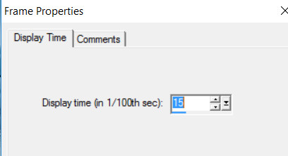 62. Edit/Select All. Click on Animation/Frame Properties. Set from 10 to 15.