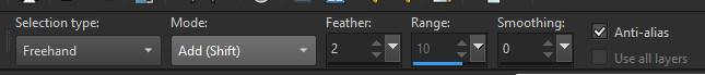 50. From the tool bar, choose the Selections/Freehand Selection with these settings and draw around the water we want to animate. Feel free to select the water in different areas than I have if you wish.