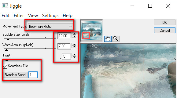 53. Effects/Eye Candy 4000/Jiggle/Brownian Motion, Seamless Tile checked.