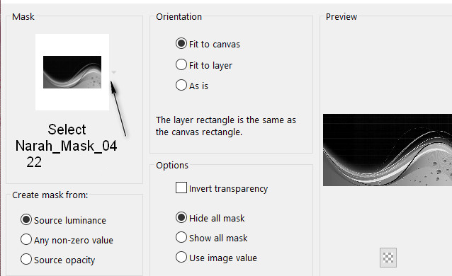 8. Layers/Load/Save Mask. Load Mask From Disk/Select Narah_Mask_0422 from drop down. Load.