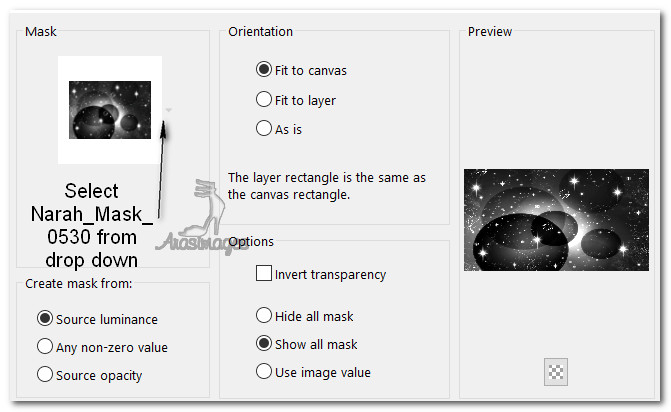 12. Layers/Load/Save Mask. Load Mask from Disk. Select Narah_Mask_0530 from drop down. Load.