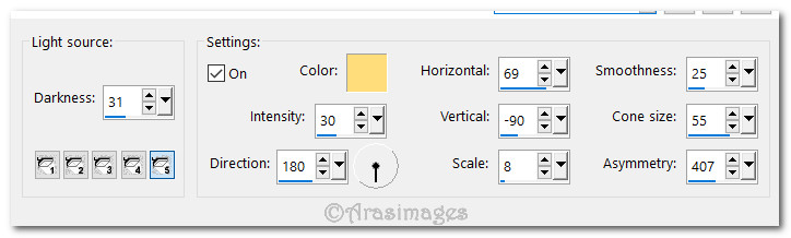 8. On New Image apply Effects/Illumination Effects/Lights. Use the Preset Boo Hiss provided for you with color #fddd7a.