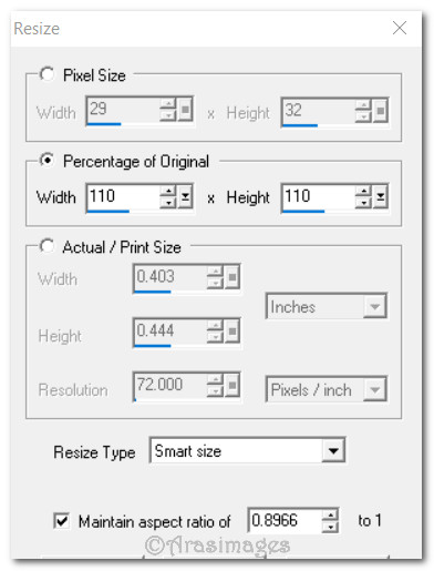 34. Image/Resize/Resize by 25%/Resize all layers unchecked.