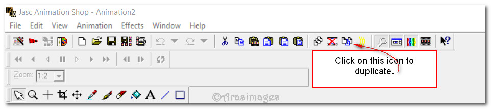 57. Open Animation Shop. Open your saved file in it. Also open the hearts .gif floatie00295.
