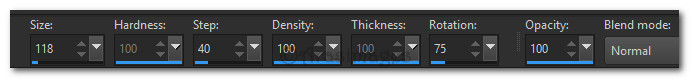 42. From the tool bar, select the Paint Brush tool/Lightening. Set the Rotation to 75, Size 118. See settings below for other settings.