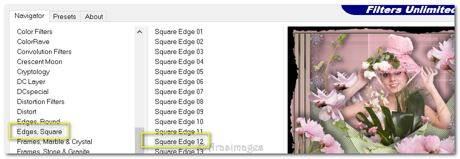 59. Effects/Filters Unlimited 2.0/Edges, Square/Square Edge 12. Apply.
