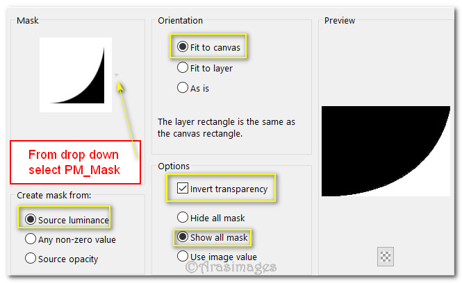 7. Layers/Load/Save Mask/Load Mask from Disk. From drop down select PM_Mask. Load.