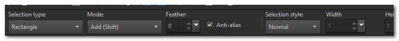 11. Layers/New Raster Layer. Using Selections tool set as seen below, draw out a rectangle from 250px to 650px.