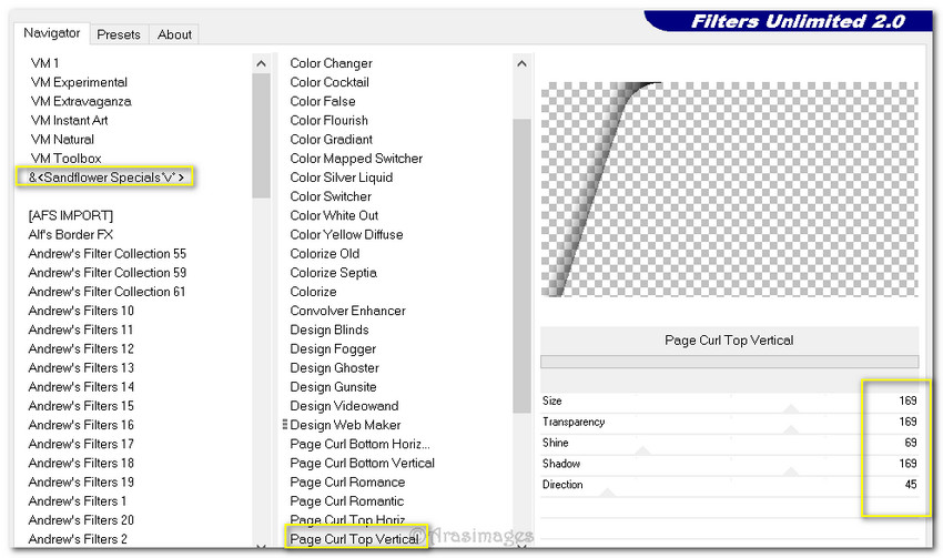 16. Effects/Filters Unlimited2/&Sandflower Specials*v*/Page Curl Top Vertical.