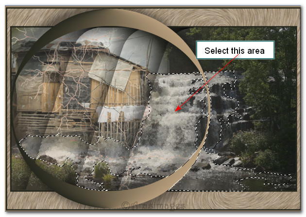 3. Open Waterfall.jpg image. Copy/Paste into Selection. Selections/Select None.