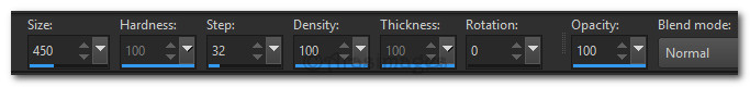 12. From tool bar Paint Brush, select brush Cracks 100. Change Background color to #99664e in Materials Palette, Size 450, right click stamping three times across left half of image, top/middle/bottom.