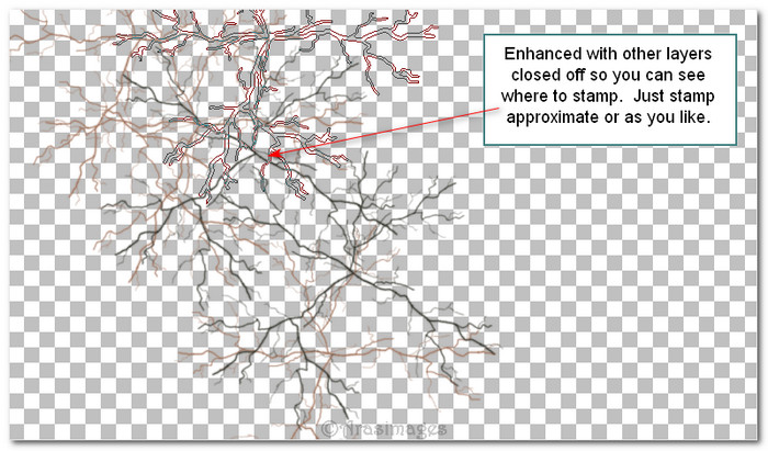 13. Change background color back to #1b1c12, Rotation to 30 and stamp twice more in between the three cracks you just stamped.