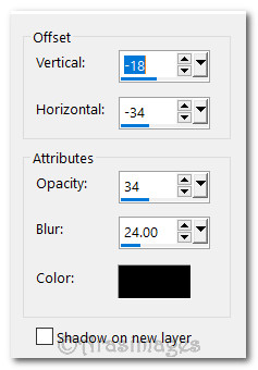18. Effects/3D Effects/Drop Shadow. Vertical -18, Horizontal -34, Opacity 34, Blur 24, color #000000.