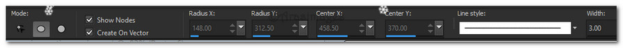 13. From Tool bar/Preset Shape Tool, select the Ellipse tool. Set the Line style to krisbigdot and the width to 3. Close off the background color in the Materials Palette and change foreground to #ffffff.