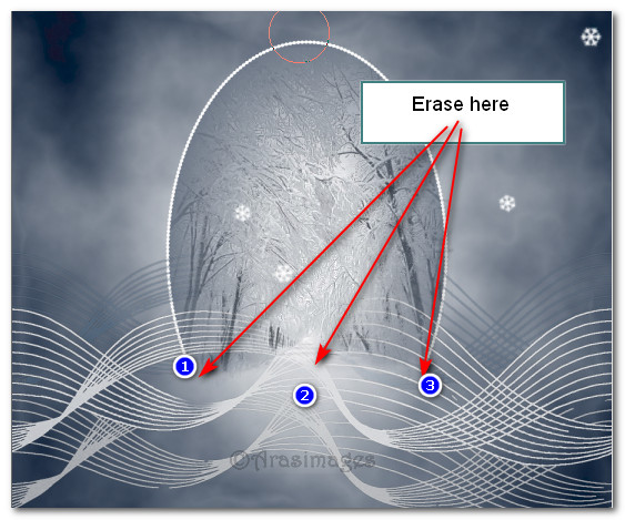 19. Highlight/Activate top layer. Open 1381757226_hiver_nikita.pspimage of trees. Using Eraser tool or Selection tool, erase Nikita's watermark off image. Copy/Paste as New Layer.