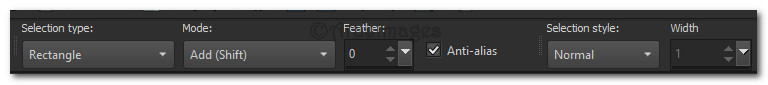34. Layers/New Raster Layer. Using Selections tool set to settings below, select a rectangle near bottom of image. Flood fill with foreground color #ffffff. Deselect.