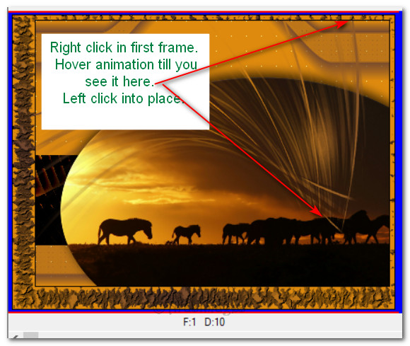 27. Go to the New Animation main working image. Right click in first frame/Paste/Into Selected Frame. Left click to set in place where you see in example below.