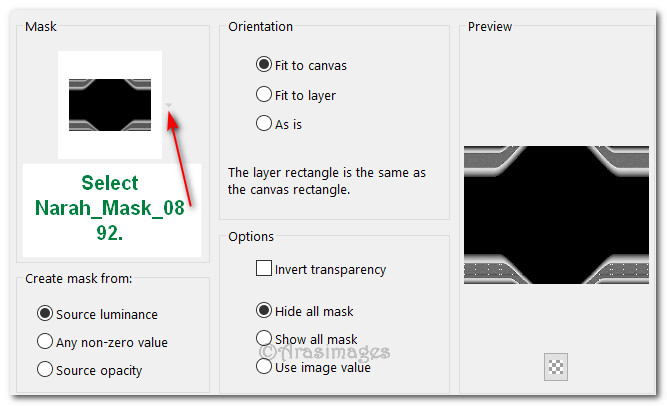 5. Layers/Load/Save Mask/Load Save Mask from Disk. From drop down arrow select Narah_mask_0892. Load. Merge/Merge Group.