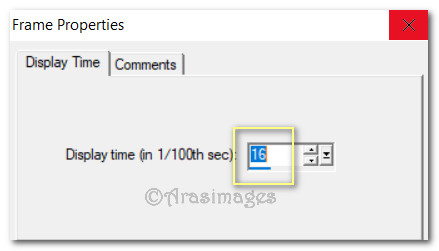 6. Animation/Frame Properties. Set the speed to 16. The higher the number, the slower the animation will be.