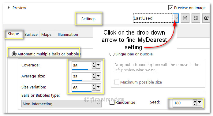 3. Duplicate. Effects/Artistic Effects/Balls and Bubbles. Select from Settings MyDearest Preset and click. OK.
