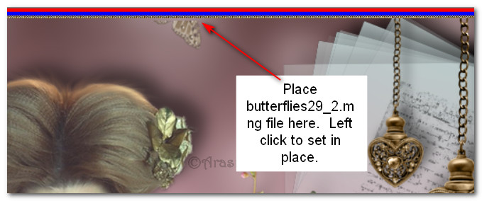 5. Go back to My Dearest frames. Right click in first frame, Paste/Paste into Selected Frame. Place butterfly tip of wing at the top of image above lady's hair flower. Left click into place.