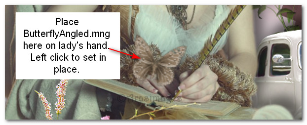 3. Go back to My Dearest frames. Right click in first frame, Paste/Paste into Selected Frame. Place butterfly on woman's hand. Left click into place.