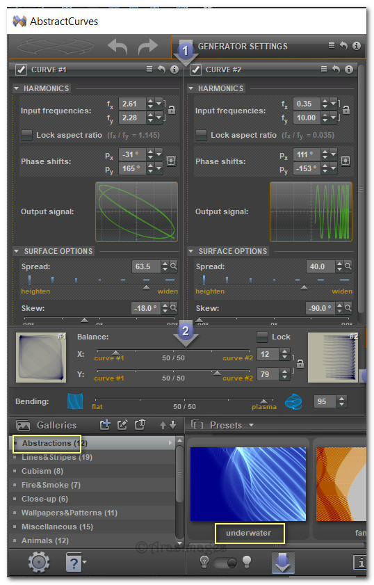 4. Effects/AbstractCurves/Abstract Curves. Choose Abstractions/underwater and all the other settings that apply to this effect.