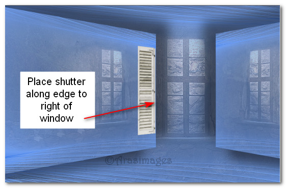 19. Duplicate. Image/Mirror. Mirror Horizontal. Place shutter to right of doorway. Shutters are now on both sides of doorway.